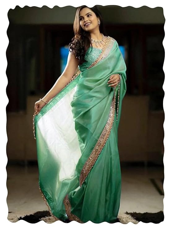 - Fabric : Tissue Saree with Tissue Blouse Piece